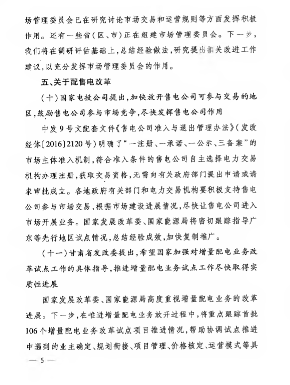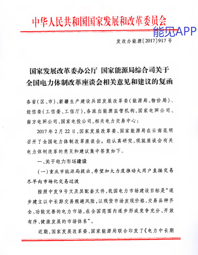发改委能源局关于全国电力体制改革座谈会相关意见和建议的复函