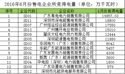 - 广东省电力交易中心2016年6月集中竞争交易概况
