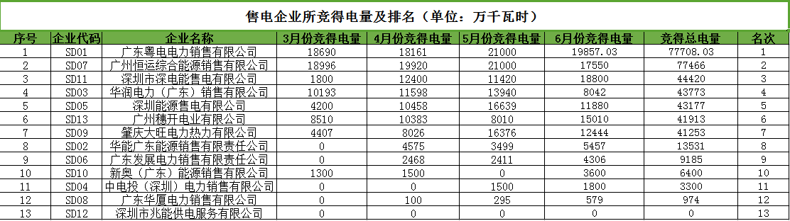 附:更新截至2016年6月份售电企业所竞得总电量电量排名